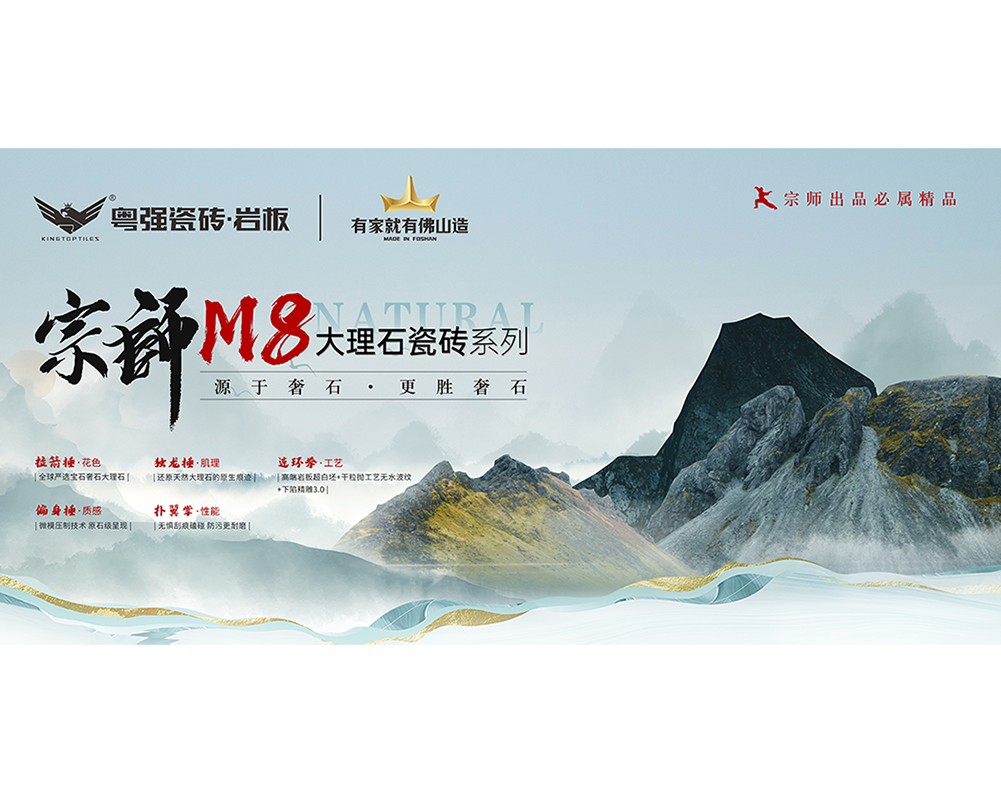 粵強瓷磚·巖板始終堅持以"傳承品質生活的質感瓷磚"為品牌定位,以獨特的審美觀和發掘力,不斷研發全新產品,將經典文化融入現代工藝技術,讓大家擁有富有藝術的質感生活空間。